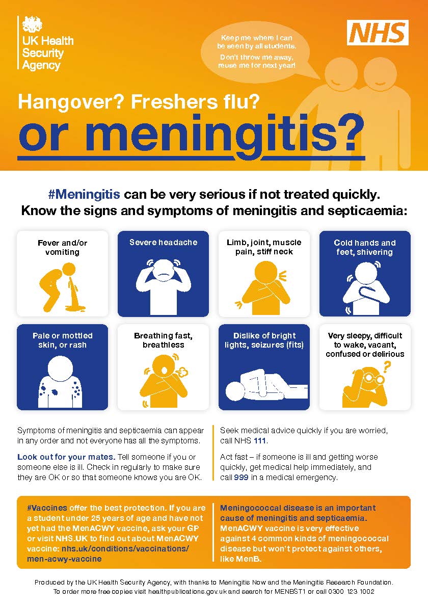 • Remind students (up to 25 years) to make sure they have had their free MenACWY vaccine